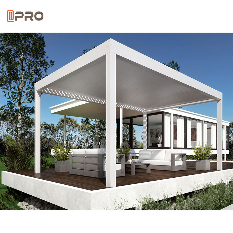 Otra alternativa es la pérgola bioclimática. Se compone de listones ajustables. Es perfectamente impermeable que permite que usted permanezca abrigado sea cual sea las temperaturas exteriores y el clima. Los listones ajustables también promueven la ventilación saliendo del sitio para un paso para el viento.