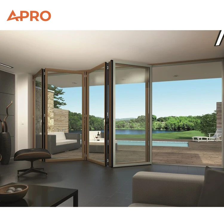 Nuestras puertas plegables de aluminio están hechas con un marco de aluminio resistente, lo que garantiza durabilidad y longevidad.mantener su espacio energéticamente eficiente y cómodo durante todo el añoEl marco está acabado con un revestimiento en polvo, proporcionando un aspecto elegante y moderno que complementará cualquier estilo de diseño.